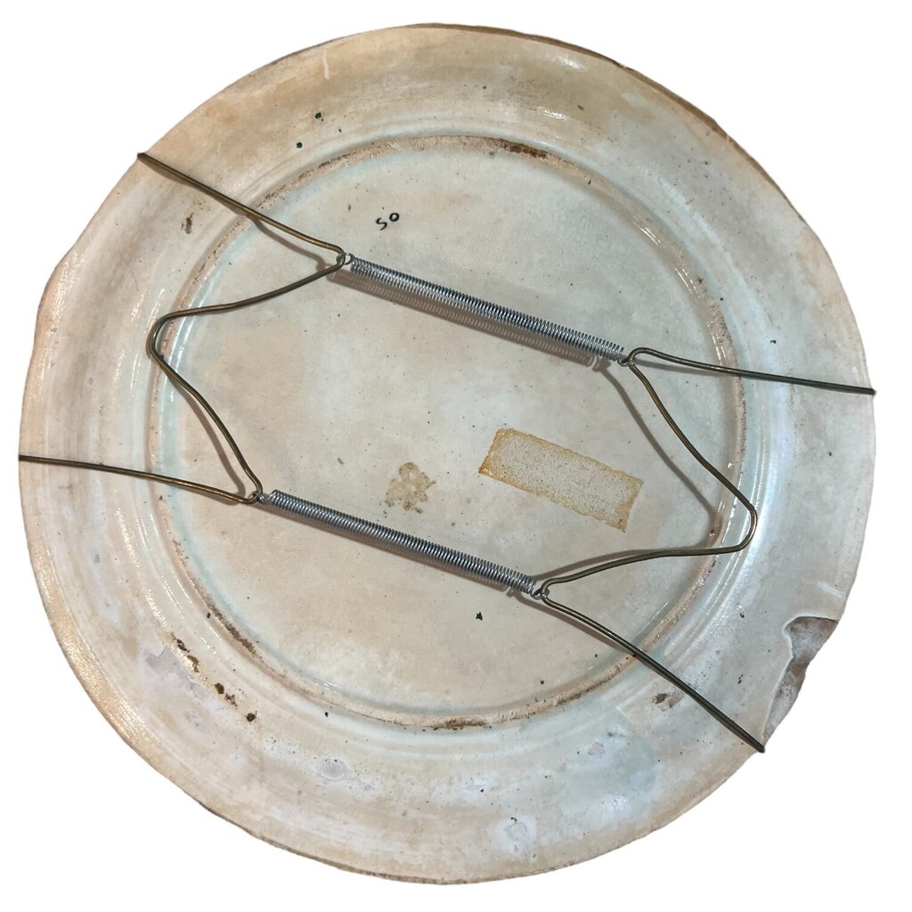Antique English Majolica Humming Bird w Cherry Blossom Branches Plate 8.5