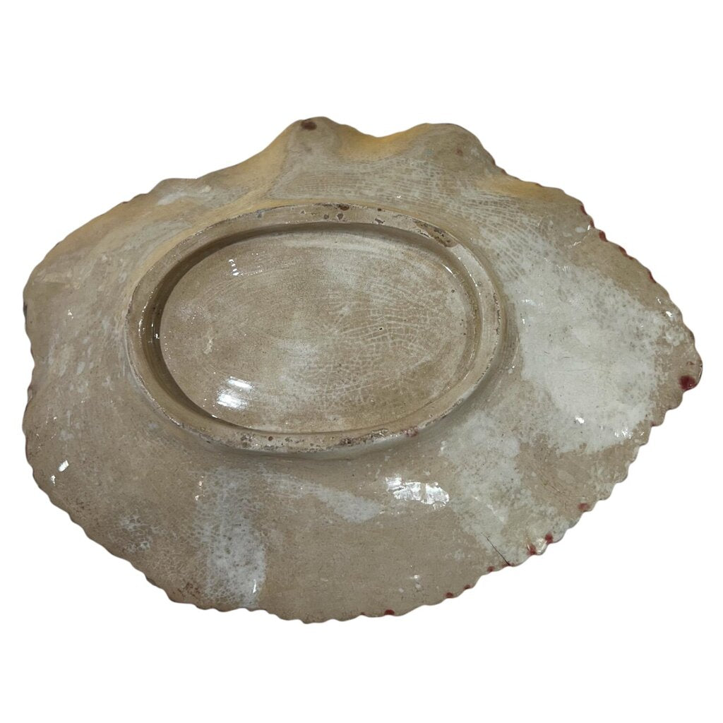 Antique Majolica Begonia Pink & Blue Leaf Plate 7.5"L X 6"W