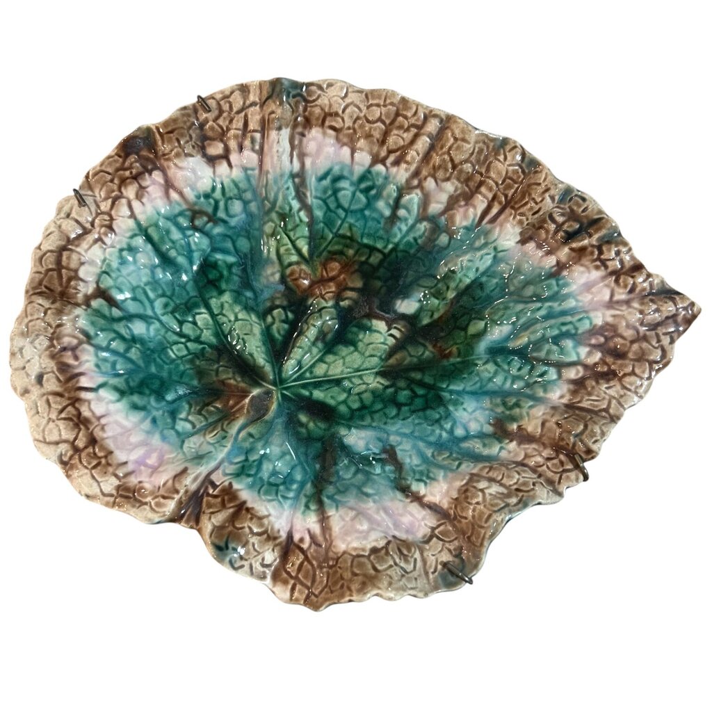 Antique Majolica Pink & Green Etruscan Begonia Leaf Dish 9Lx7W