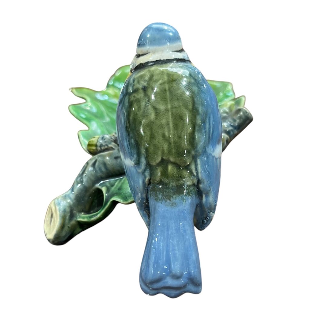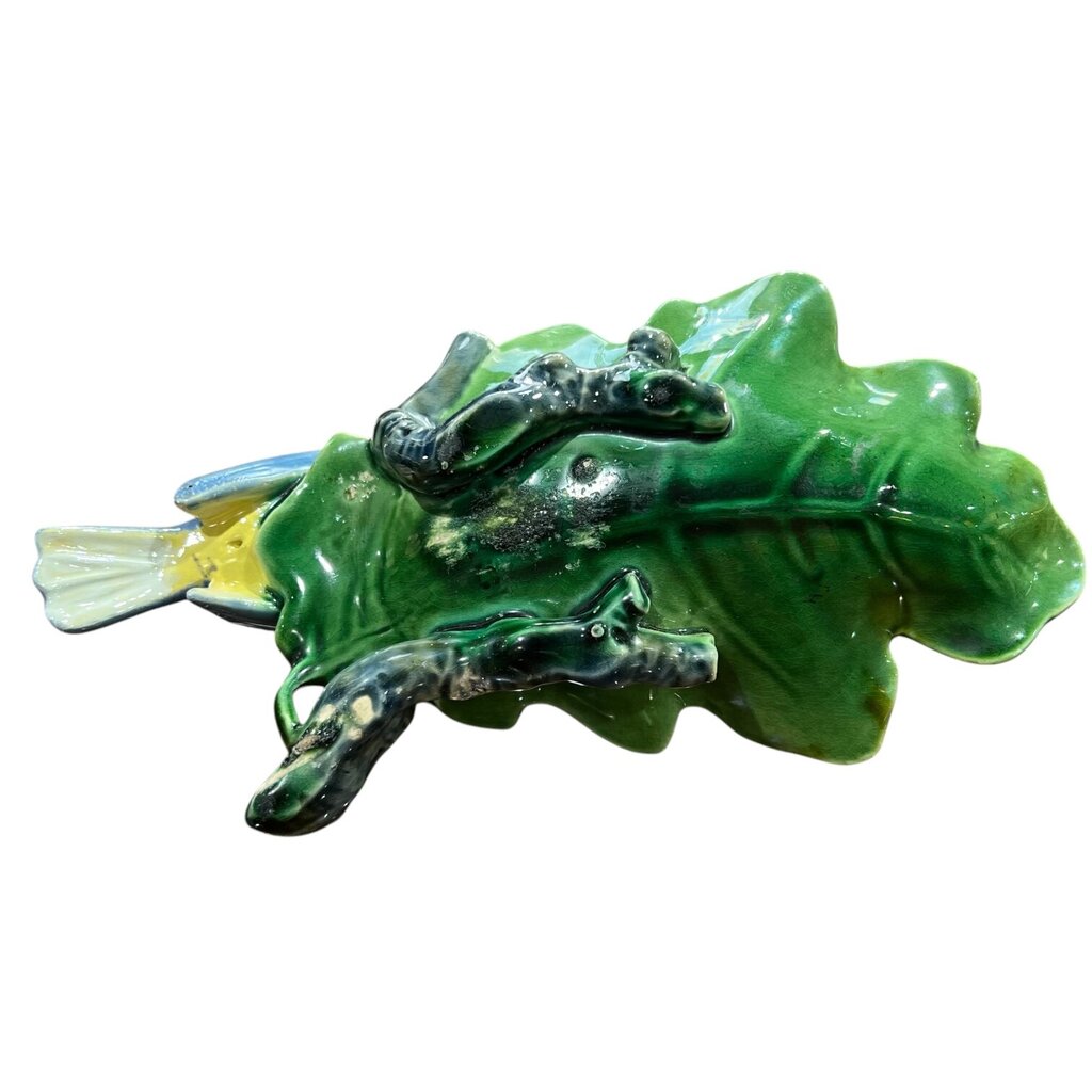 Antique Minton Majolica Blue Tit Leaf Shaped Dish 3.5"H X 8"L X 4"W
