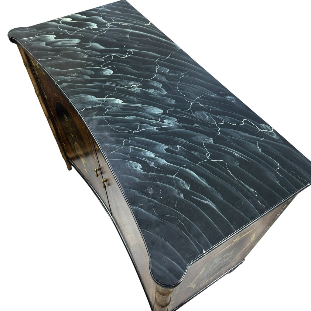 Black Hand-painted Floral Motif 2 Door Console w/ Faux Bamboo Legs 42Lx20Wx37H