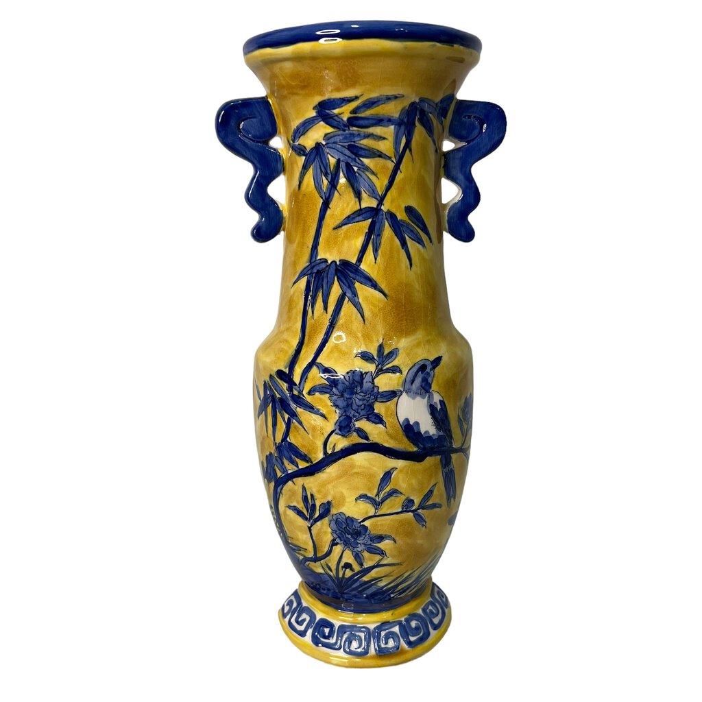 Blue & Yellow Handpainted Bird on Bamboo Ceramic Wall Sconce 12" tall