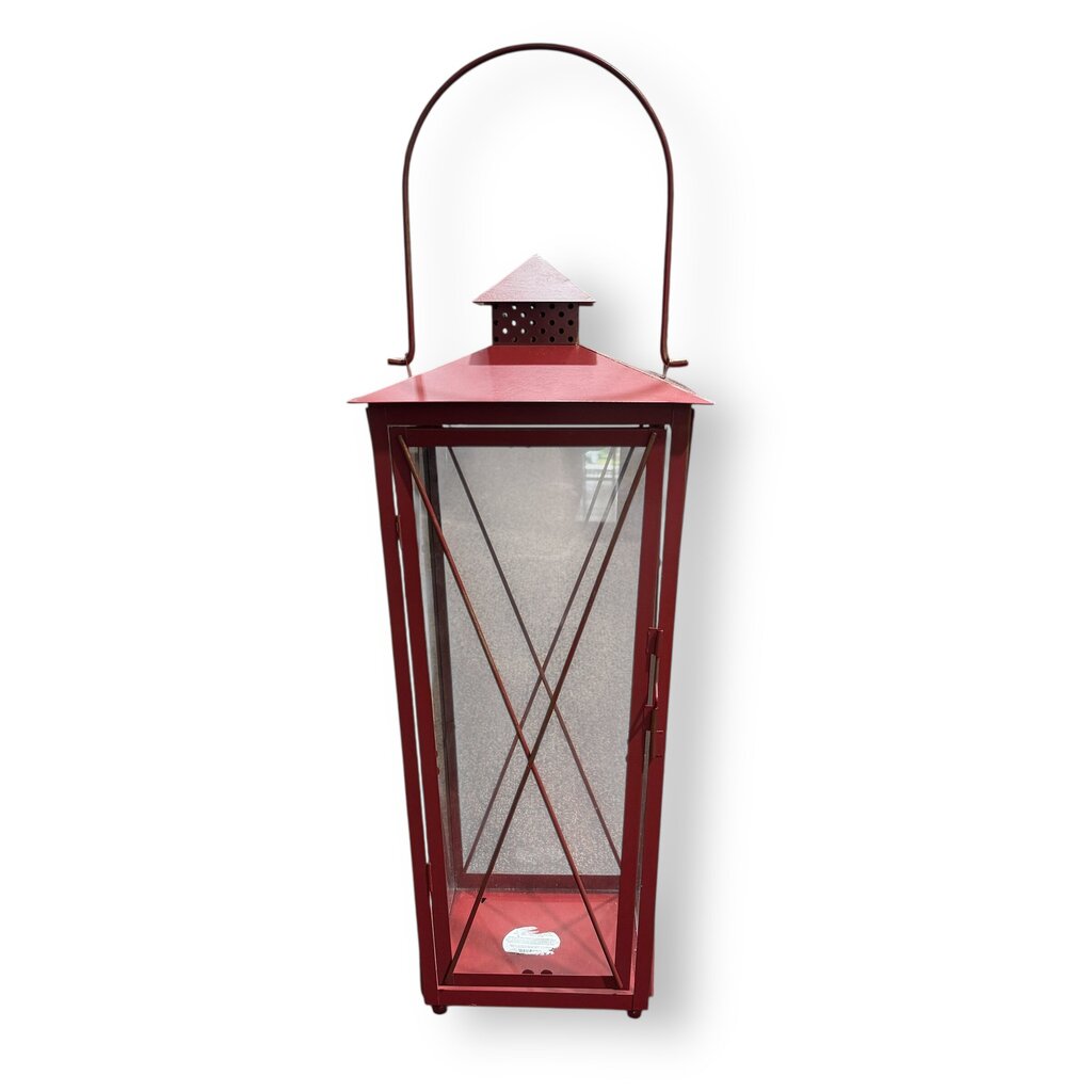 Large Red Metal Lantern Candle Holder w/ Glass Windows