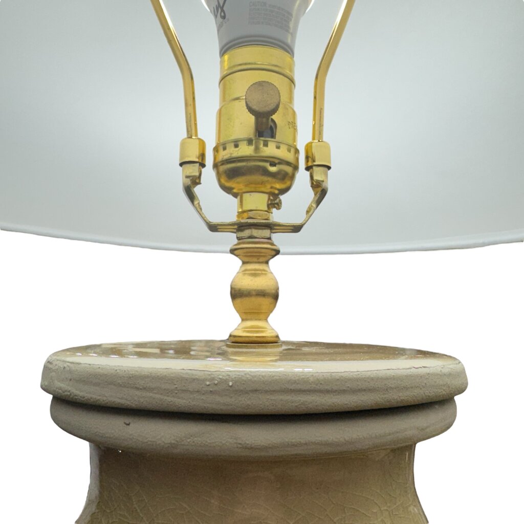 Pair of Glazed Terra-cotta Pottery Lidded Jar Lamps w/ Shades 30" tall
