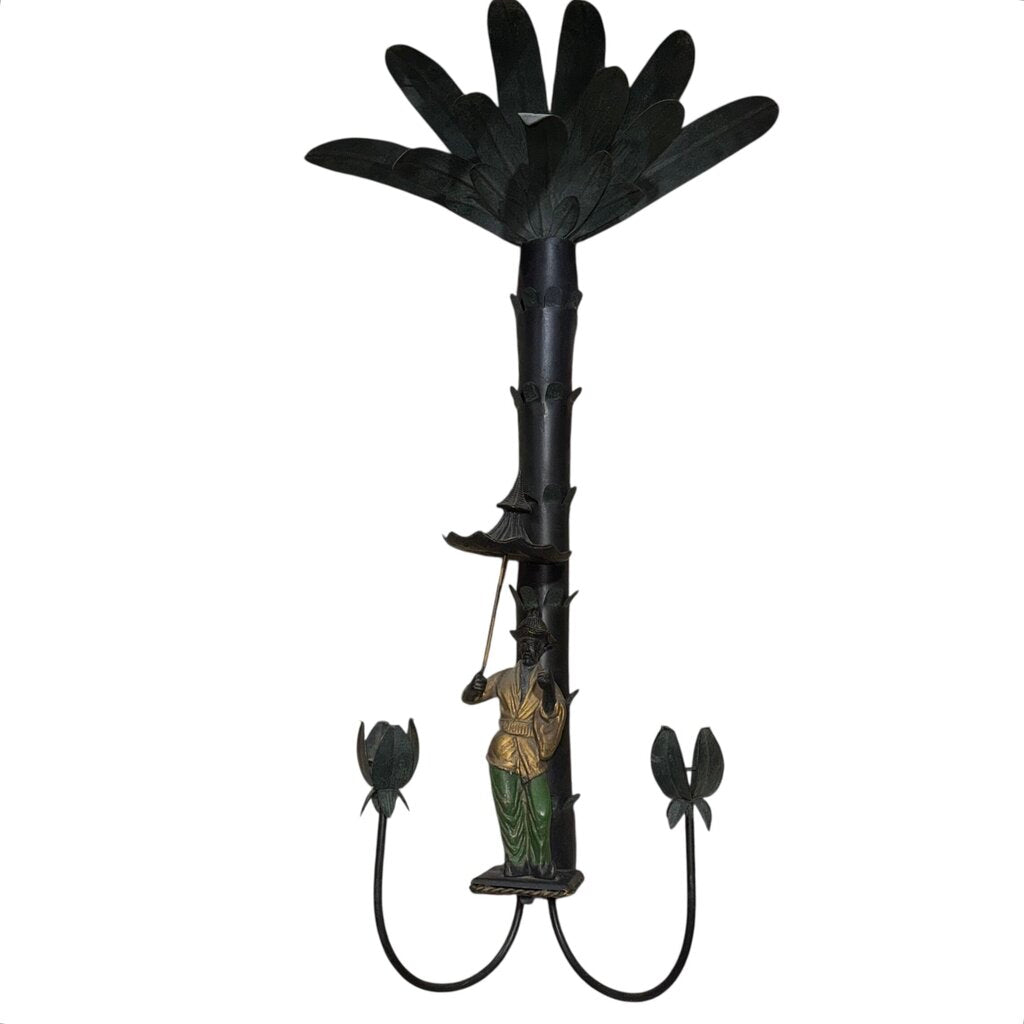 Pair of Iron Chinoiserie Figural and Palm Sconces 15Lx8Wx30H