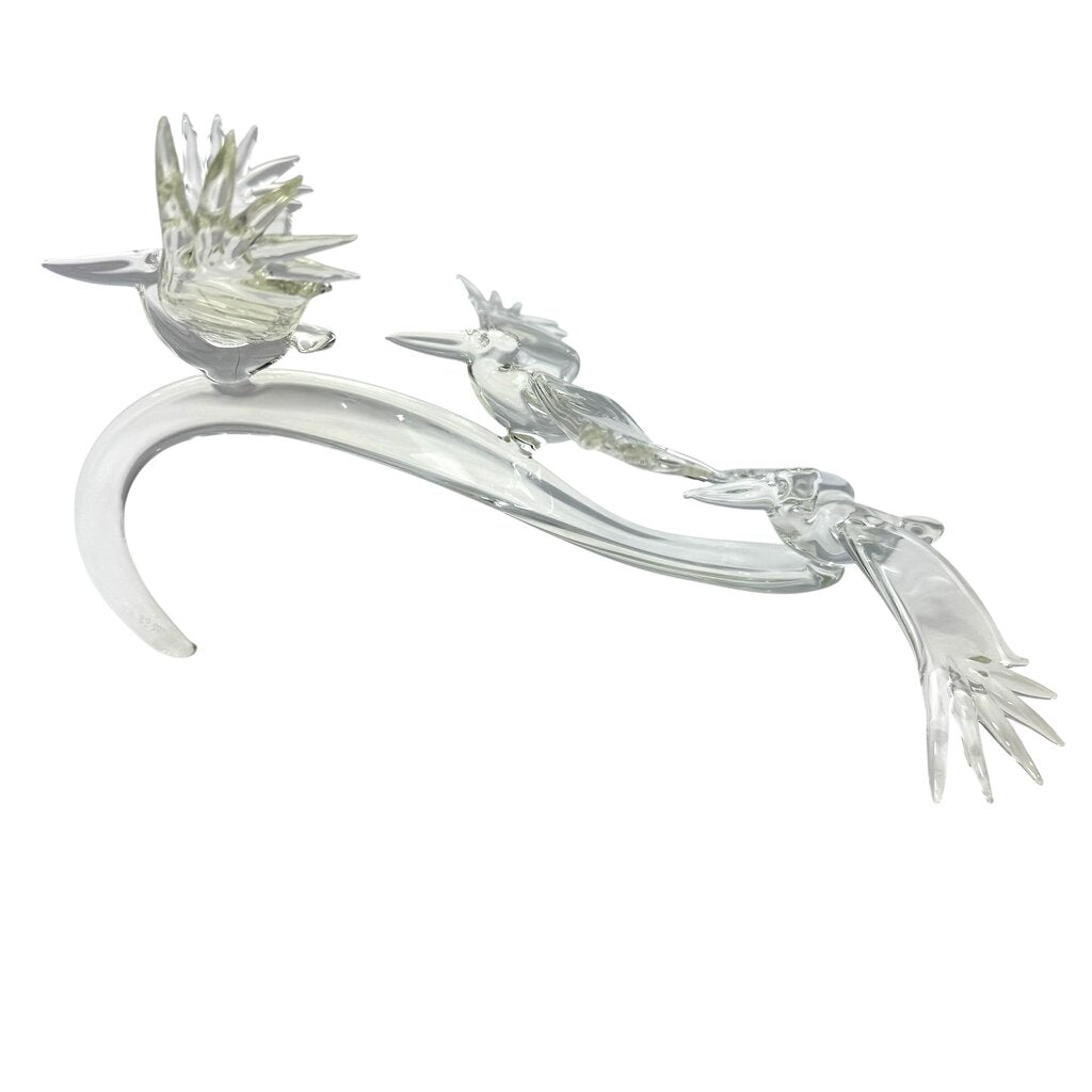 "Pelican Wave" Art Glass 3 Pelicans Flying a Wave 11Lx8Wx6H