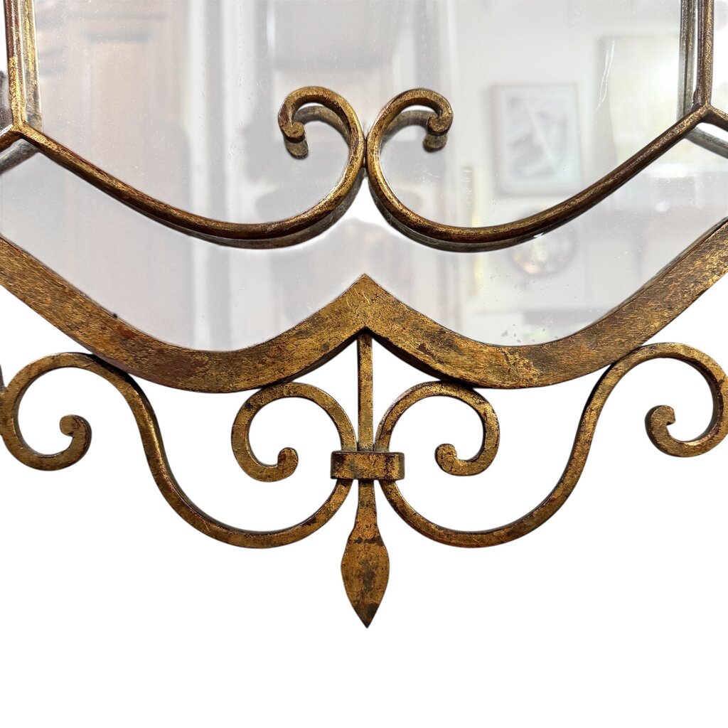 Pier Luigi Colli Art Deco Style Gold Gilt Wrought Iron Wall Mirror 20Lx27H