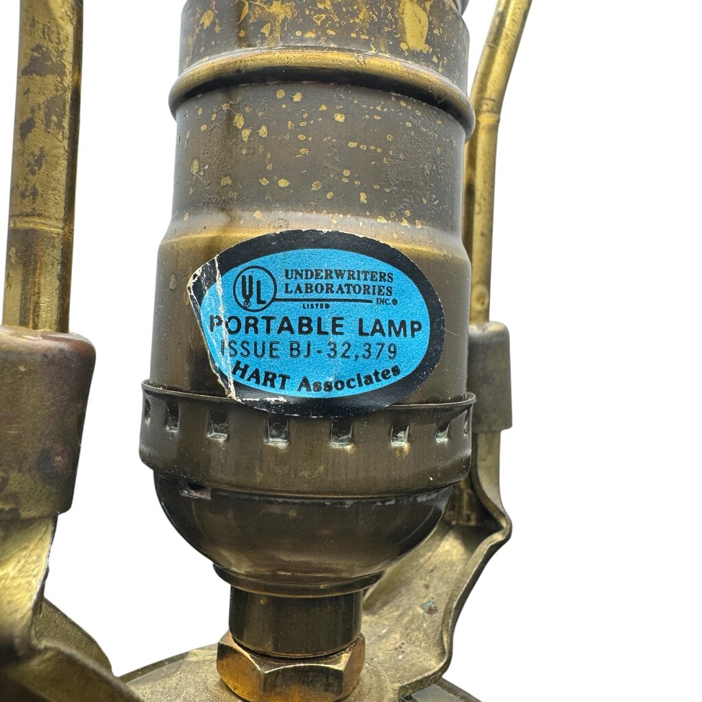 Rare Pair of 1970s Hart Associates Hollywood Regency Table Lamps Featuring Sculptural Brass and Faux Bamboo Columns w/ Rich Green Shades. Classic Style w/ Exceptional Weight and Craftsmanship. A True Designer Find. 20Lx20Wx35H