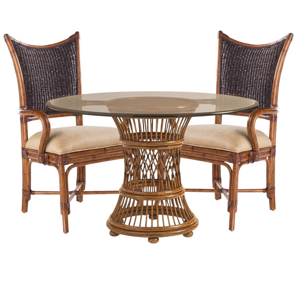 Tommy Bahama Aruba 48" Glass Top Rattan Dining Table w/ 4 Island Estate Mangrove Chairs