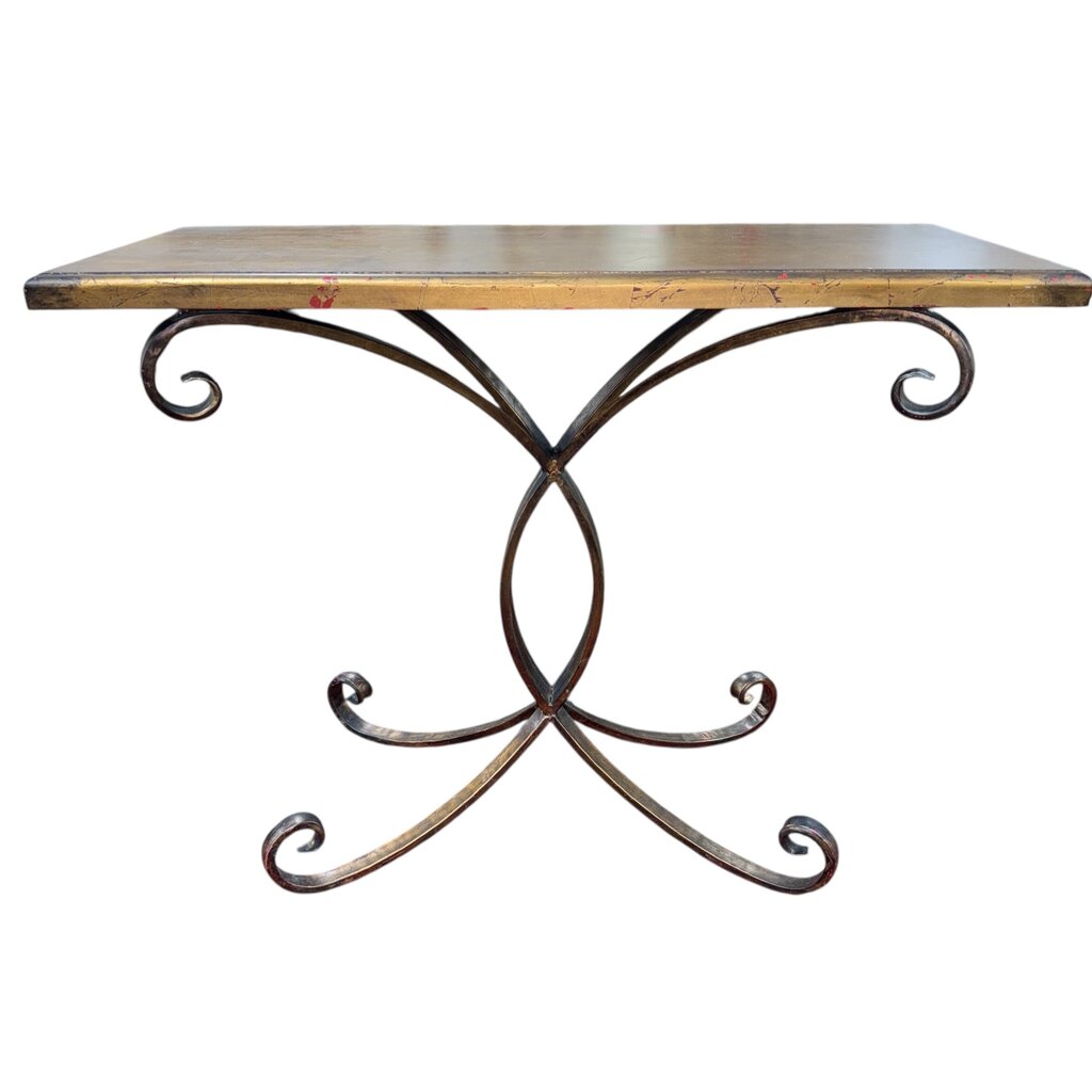 Uttermost Console Table Distressed Red Top w/ Gold Gilt Overlay & Iron Base 43Lx19Wx33H