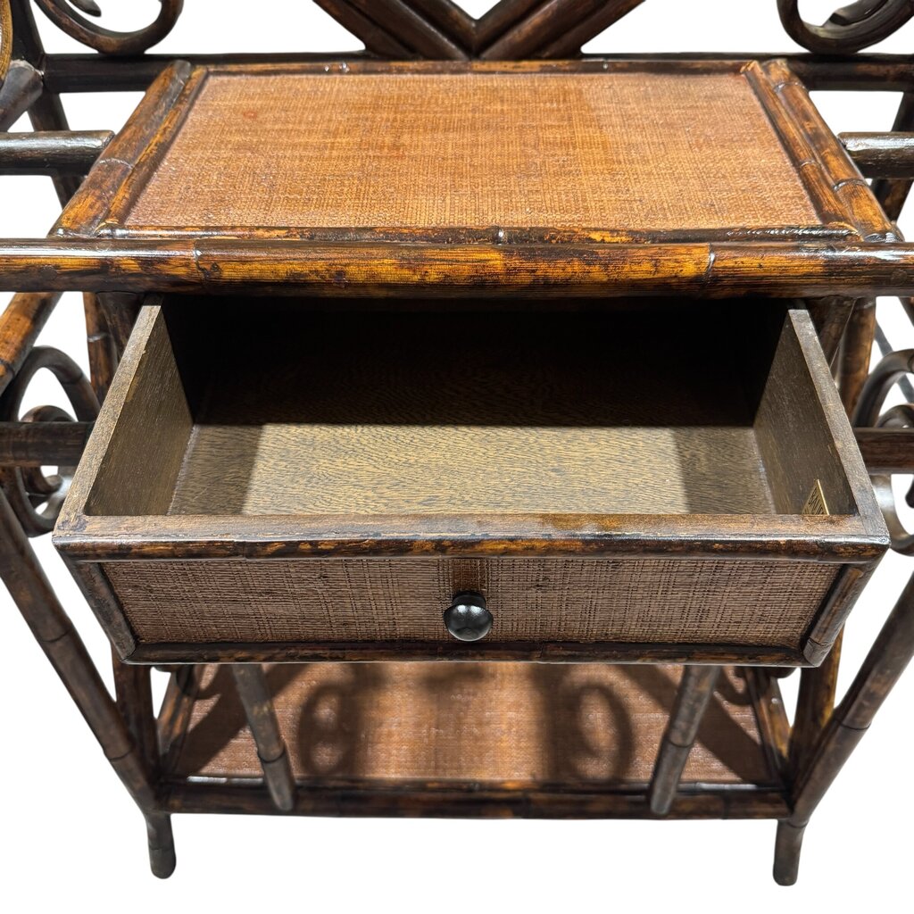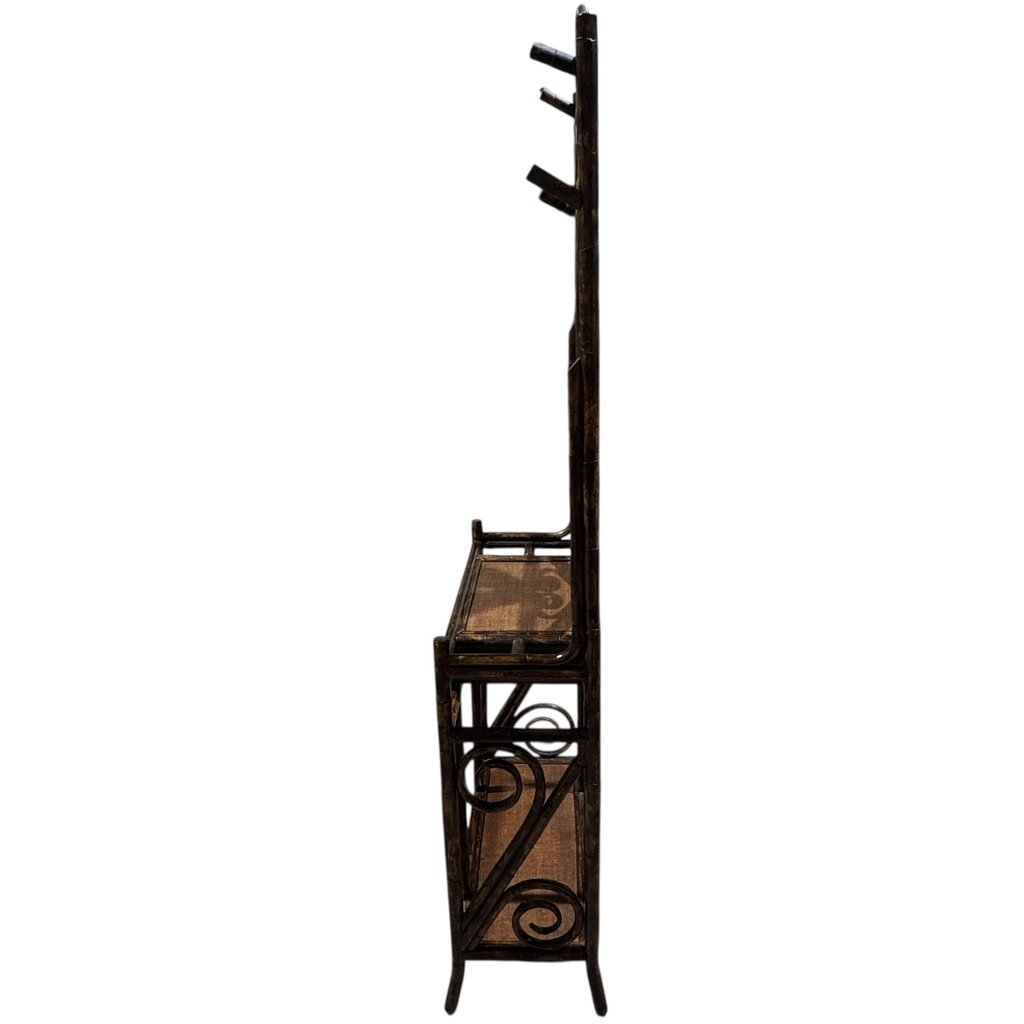 Vintage Faux Bamboo Chinoiserie Rattan Hall Tree w/ Fan Shaped Mirror Made in Charleston, North Carolina by: Bauer International Inc 29Lx13Wx76H
