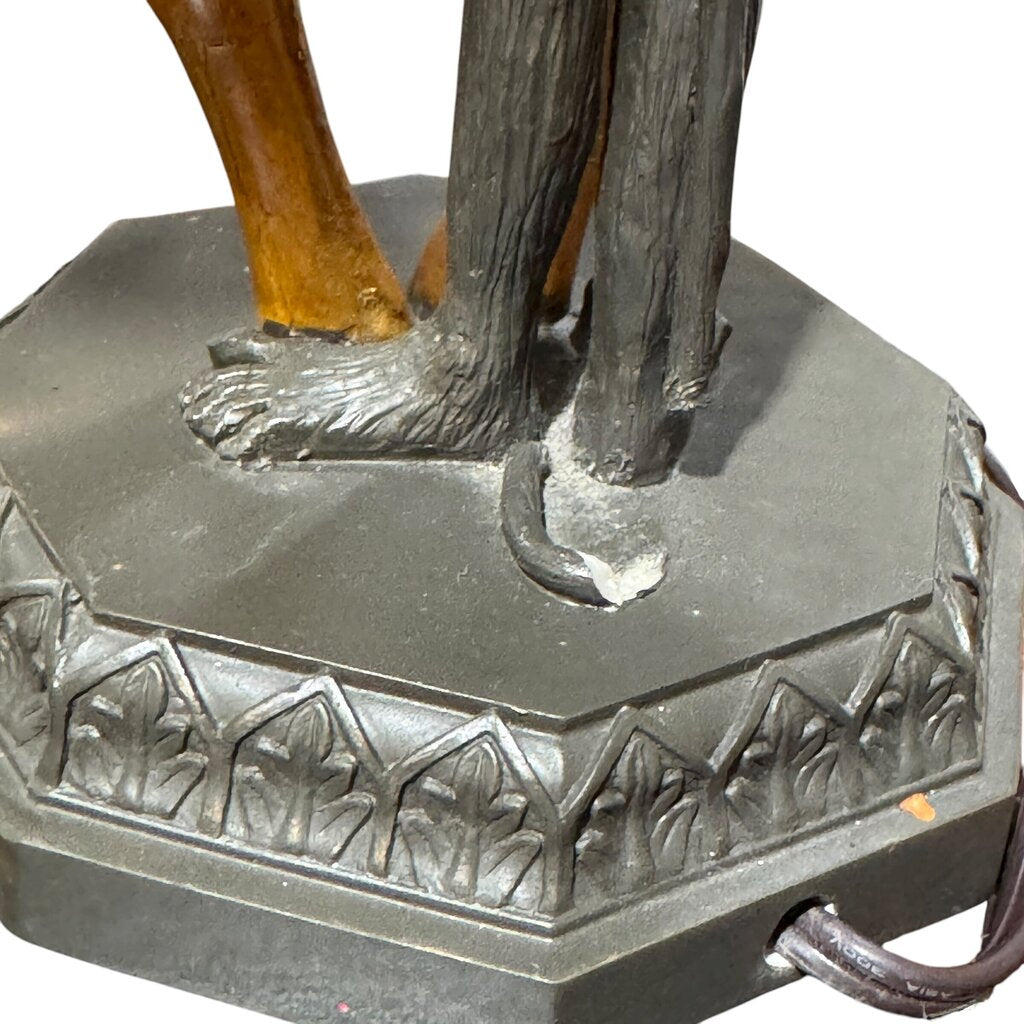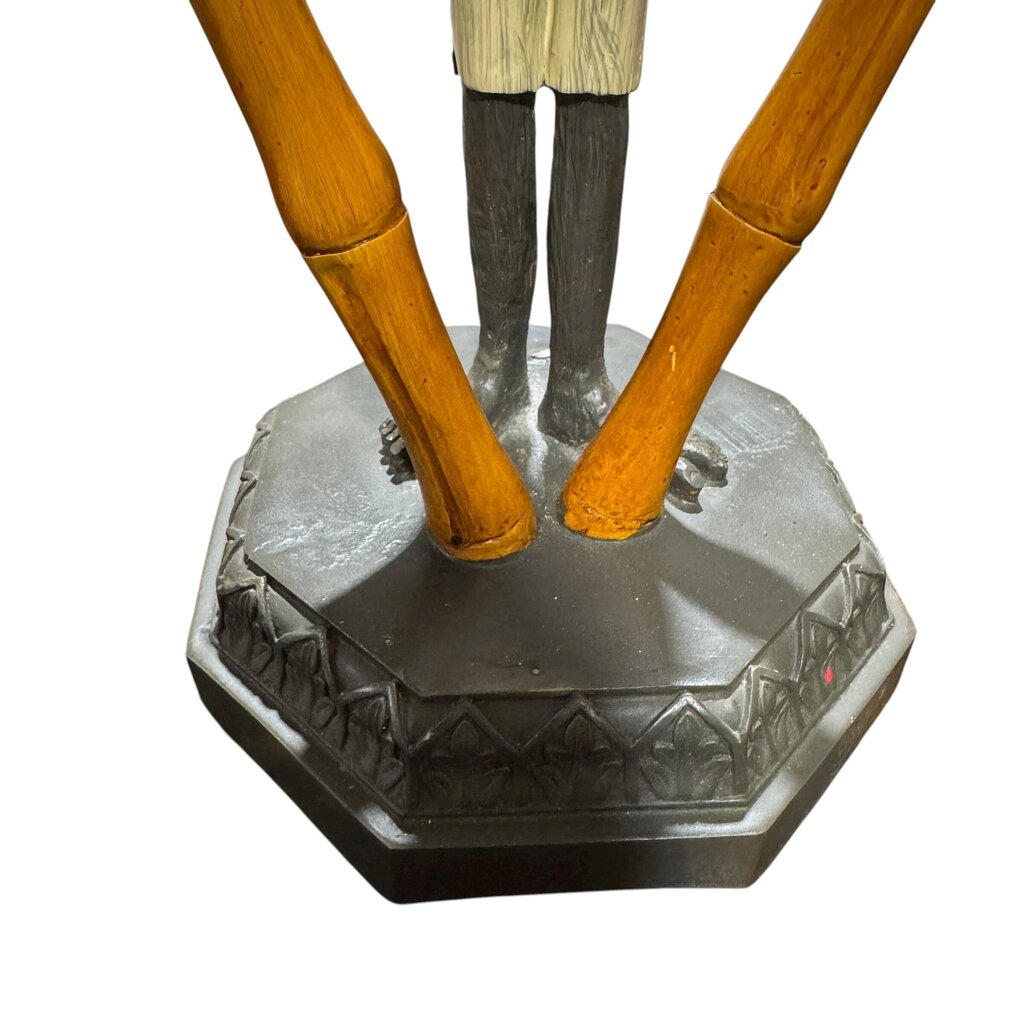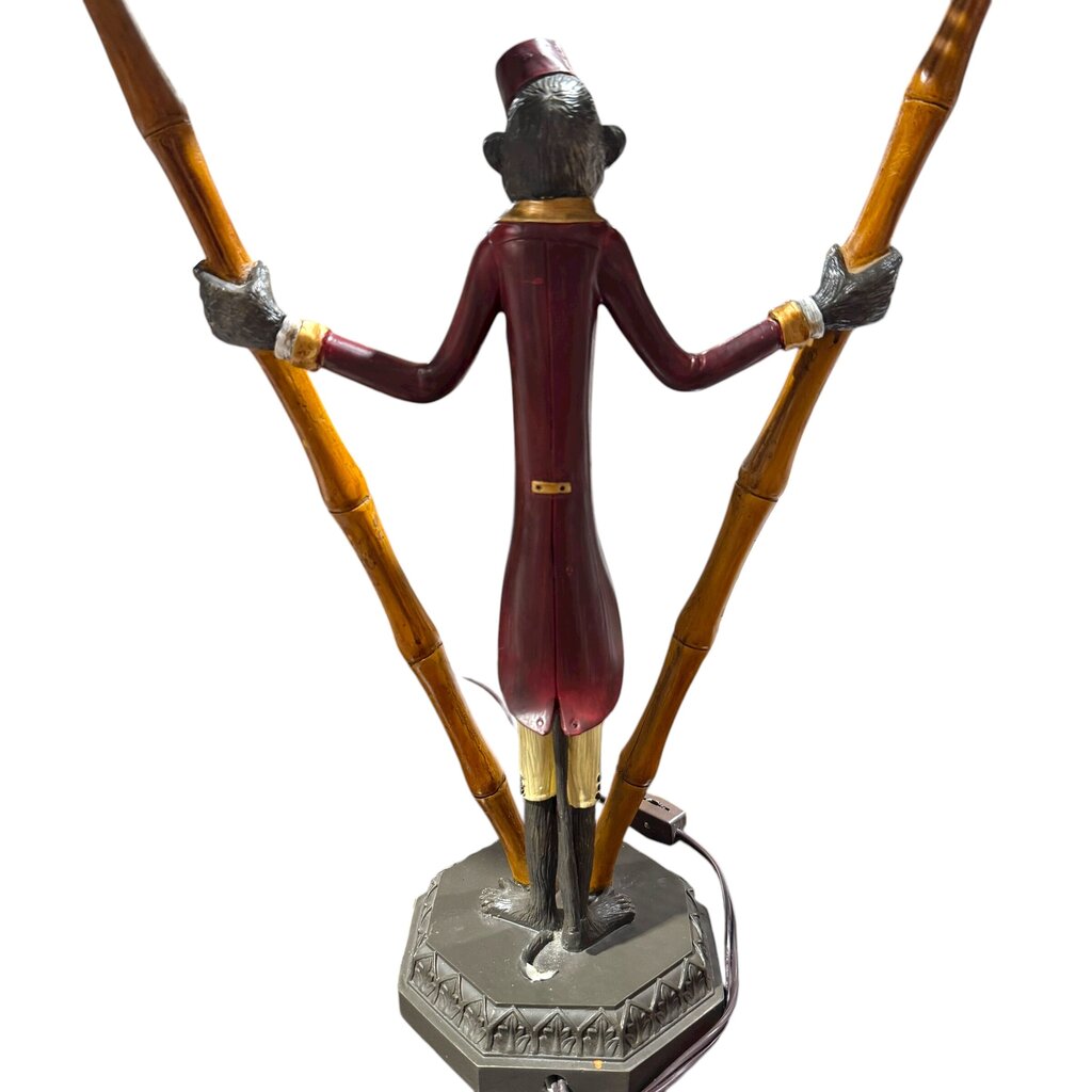 Vintage Two Light Bellhop Monkey Table Lamp w/ Wicker Shades 24" tall