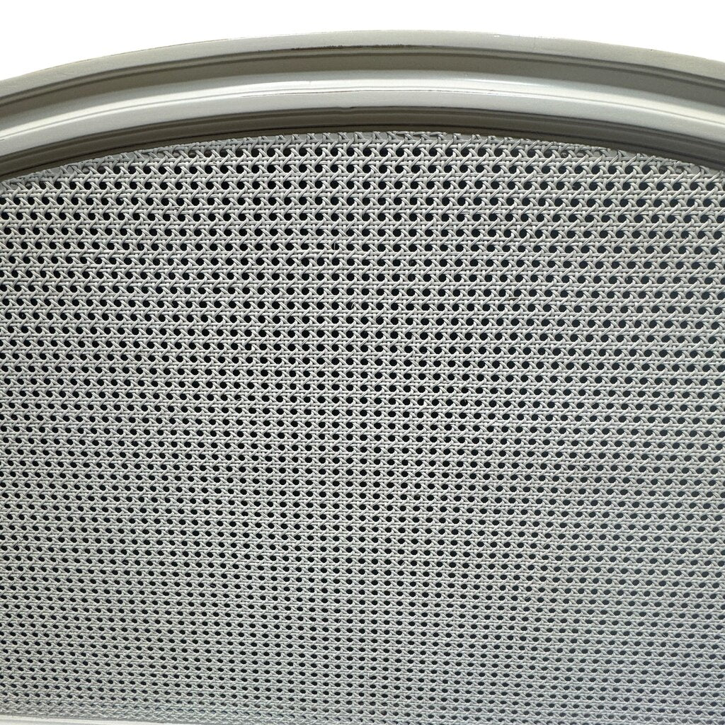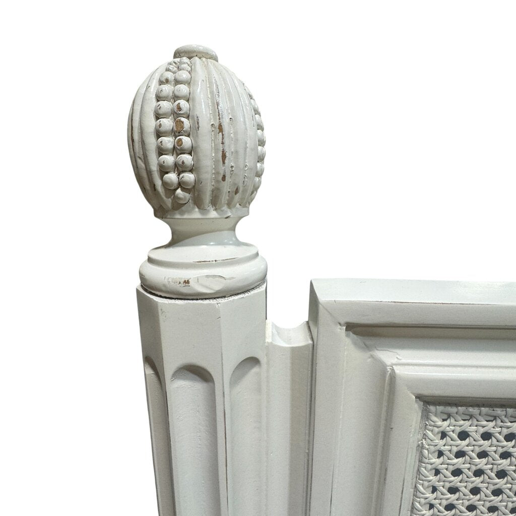 White Coastal French Country Distressed King Headboard w/ Arched Cane Panel 80Lx60H