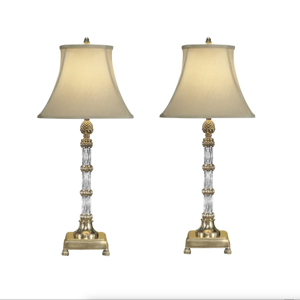 Wildwood Brass Pineapple & Crystal Column Lamps 33" tall (pair)