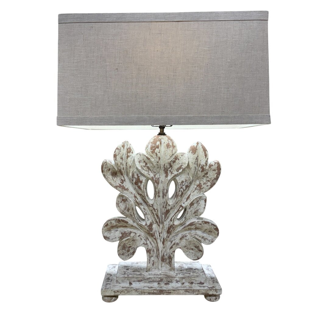Wooden Whitewash Coral Lamp w/ Linen Shade 18Lx10Wx29H